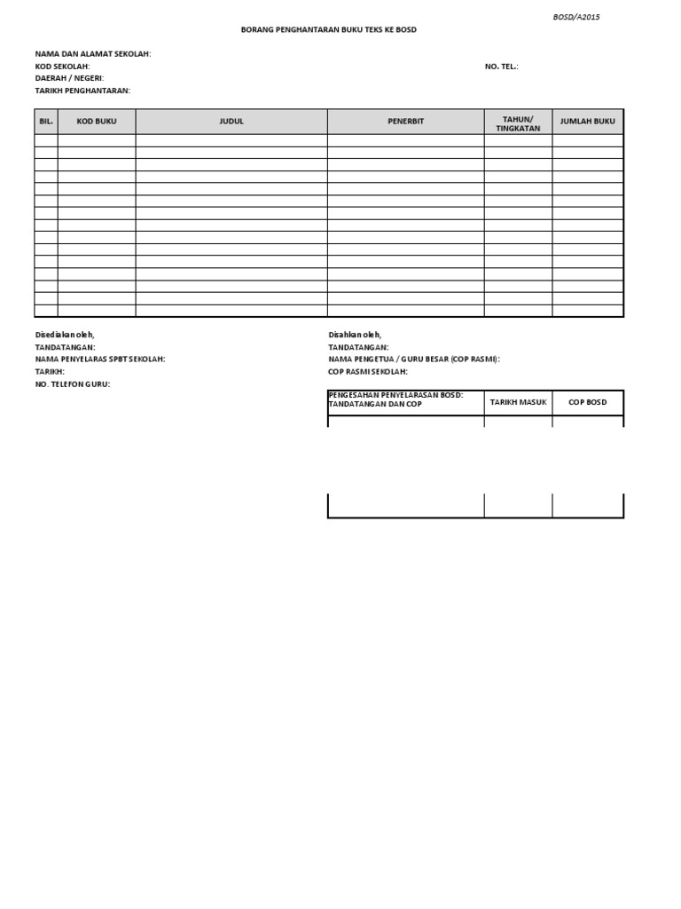 Borang Hantar Dan Ambil Buku Teks Di Bosd Xlsx