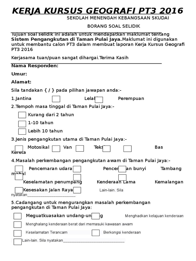 Contoh Kerja Kursus Geografi Pt3 Sistem Pengangkutan Idea Terkini