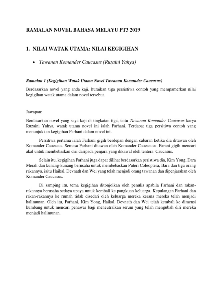 Contoh Soalan Novel Tawanan Komander Caucasus S Soalan