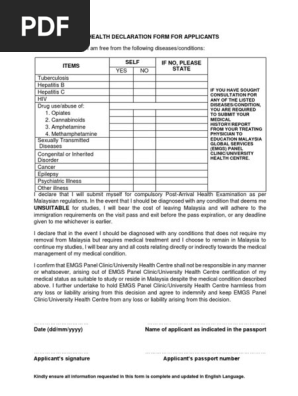 Lampiran B Health Declaration Form For Applicant Substance Abuse Public Health