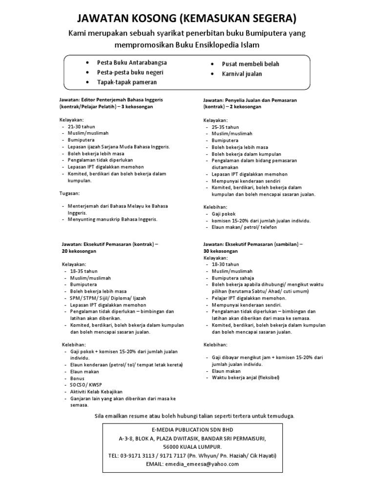 Kerja Kosong Di Syarikat Penerbitan Buku