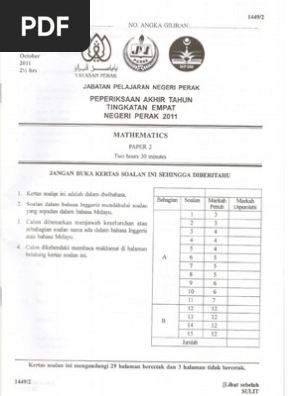 Soalan Peperiksaan Matematik Tingkatan 2 Akhir Soalan Matematik Peperiksaan Akhir Tahun Kertas 1 Pdf Document