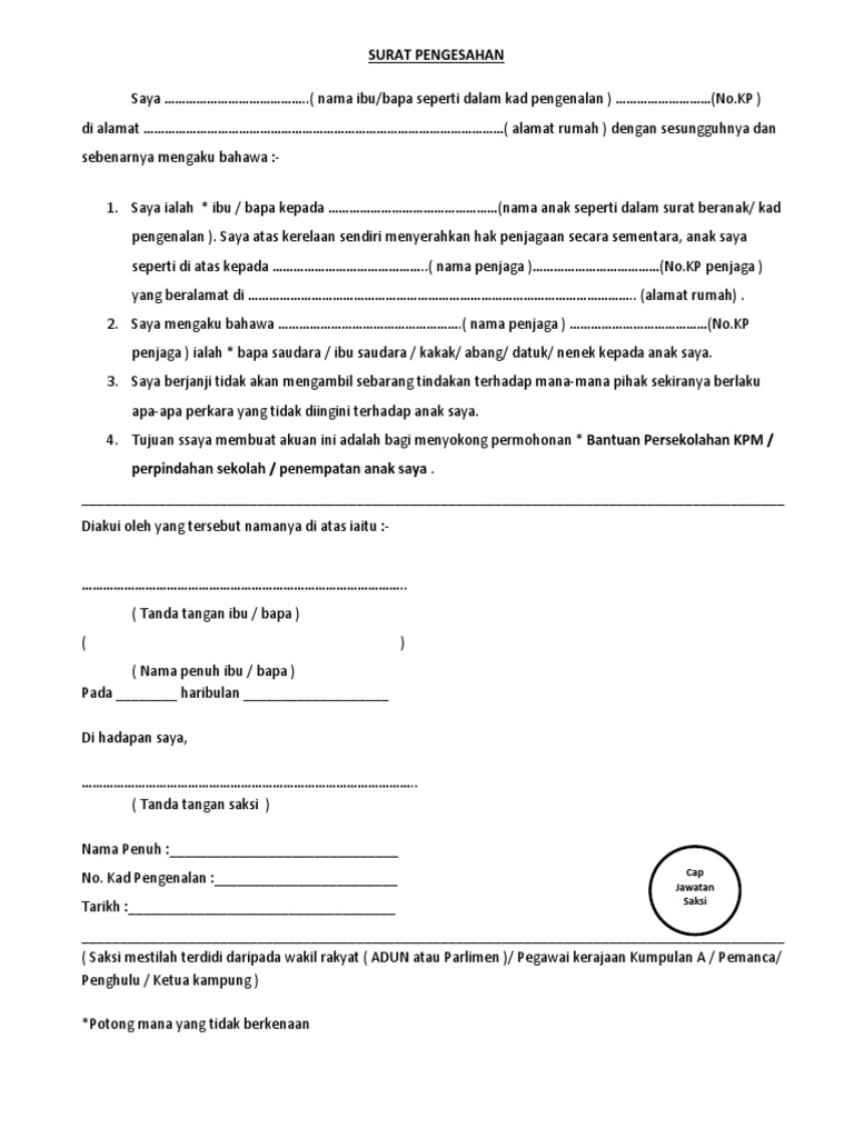 Contoh Surat Rasmi Hak Penjagaan Anak Surat Rasmi A