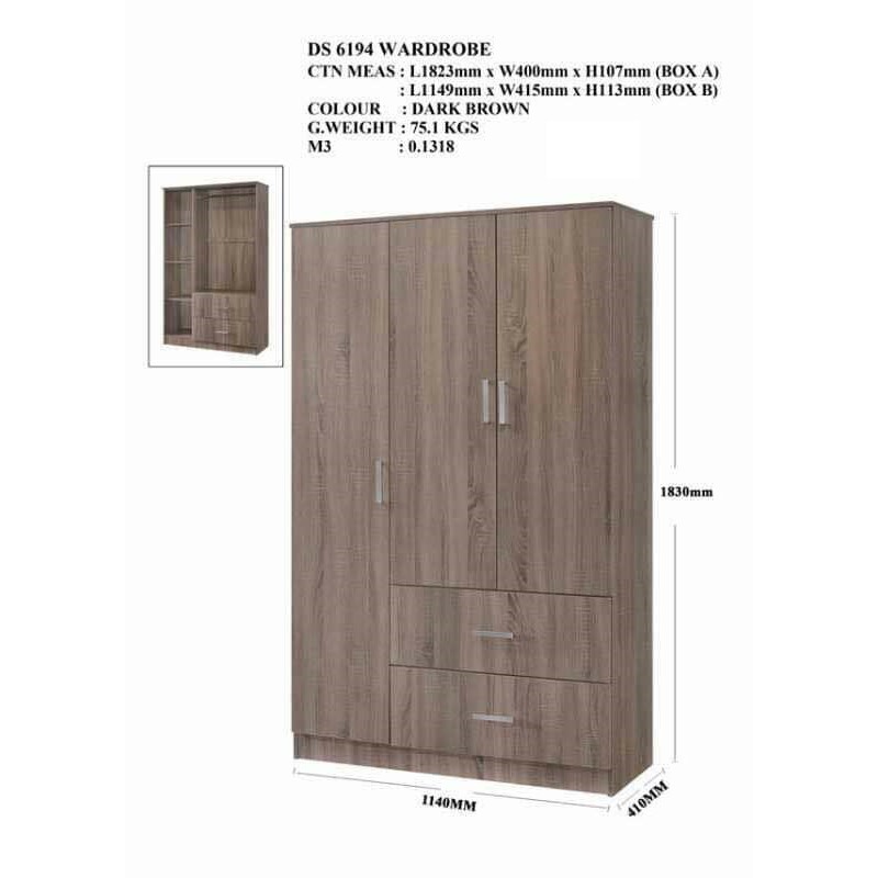 Free Shipping Kcl 4ft Simple Wardrobe 3 Doors 1 Drawer Hanging 6 Shelves Almari Baju 3 Pintu 1 Laci Bergantung Almari Pakaian Lazada