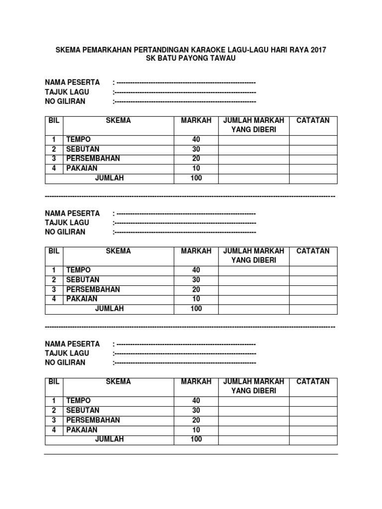 Skema Pemarkahan Pertandingan Karaoke Lagu Docx