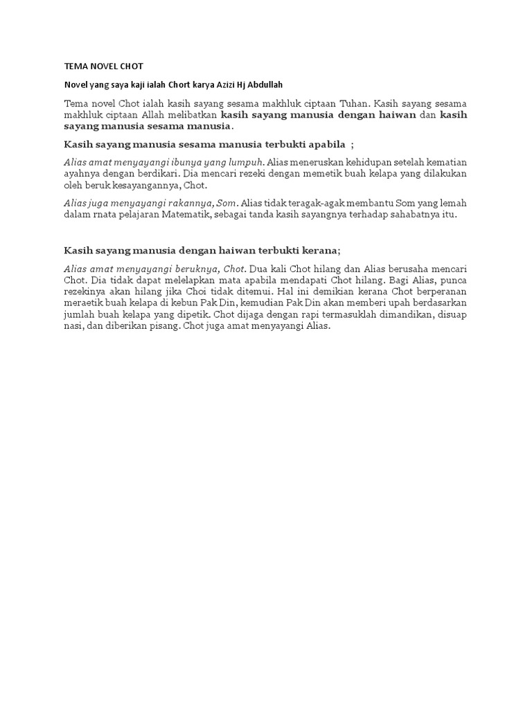 Contoh Jawapan Novel Chot Tentang Tema