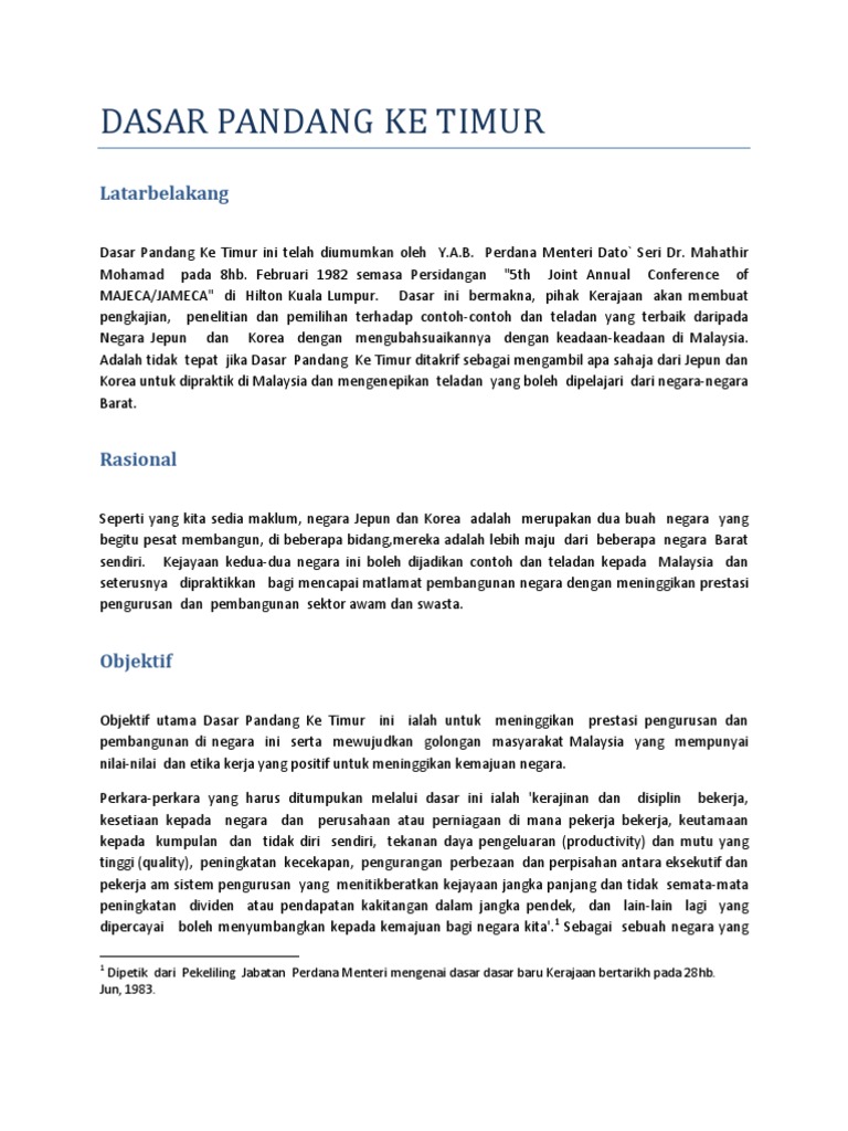 Https Www Pmo Gov My Dokumenattached Dasar 06dasar Pandang Ke Timur Pdf