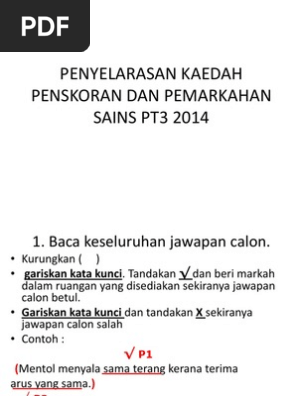 Penyelarasan Kaedah Penskoran Dan Pemarkahan Sains Pt3 2014