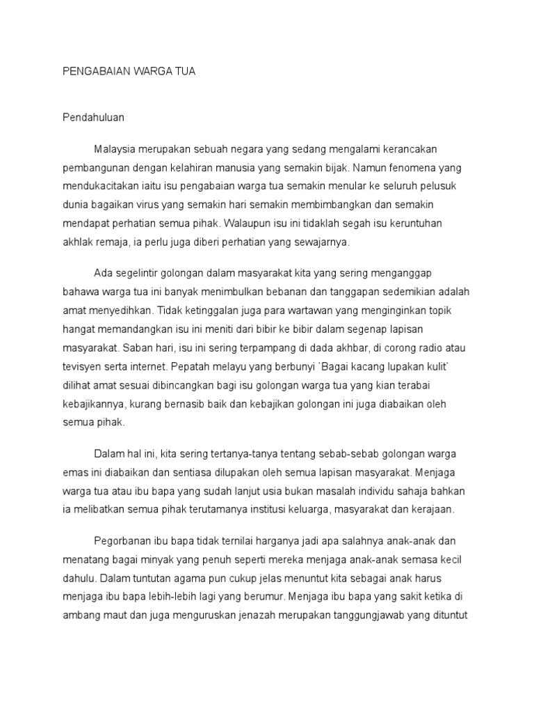 Punca Pengabaian Warga Tua Karangan