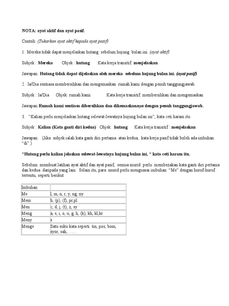 Nota Latihan Ayat Aktif Ayat Pasif Soalan
