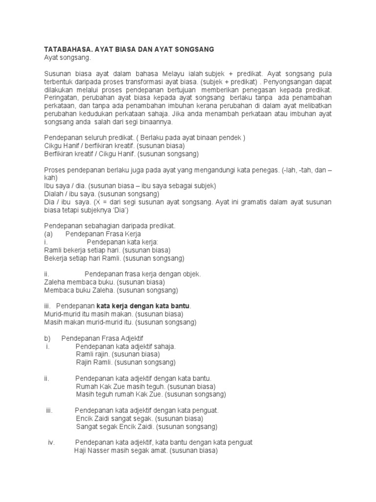 Susunan Ayat Biasa Dan Susunan Ayat Songsang