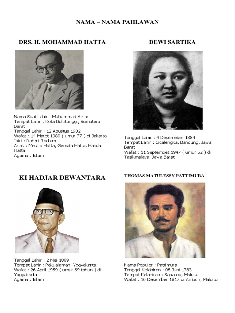 175 Nama Pahlawan Nasional Indonesia Dan Asal Daerahnya Lengkap