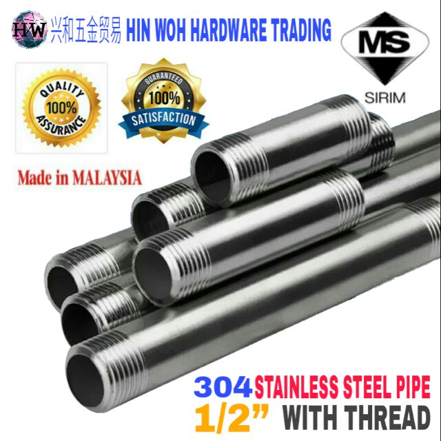 1 2 304 Stainless Steel Pipe With Thread Sirim High Quality Shopee Malaysia