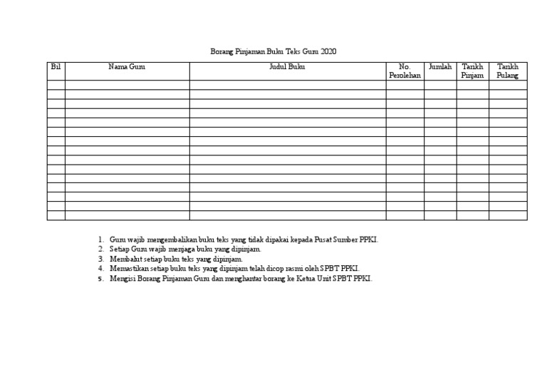 Borang Pinjaman Buku Teks Guru 2020