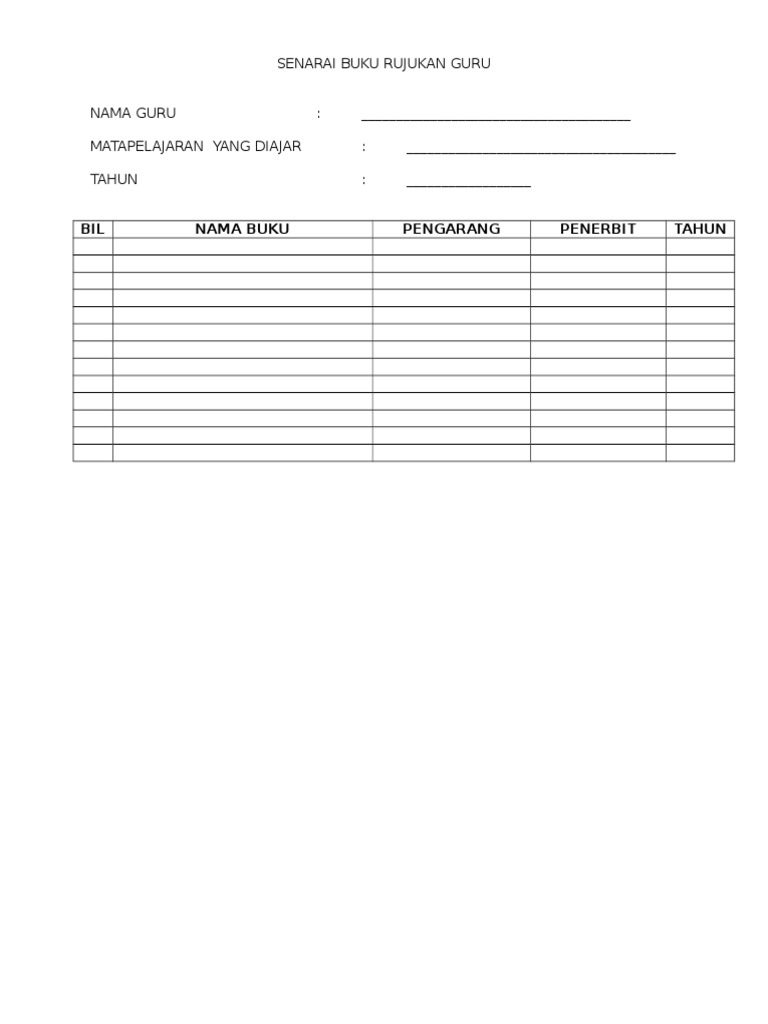 Borang Senarai Buku Rujukan Guru