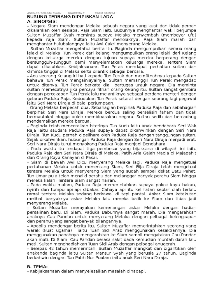 Nota Dan Latihan Prosa Burung Terbang Dipipiskan Lada