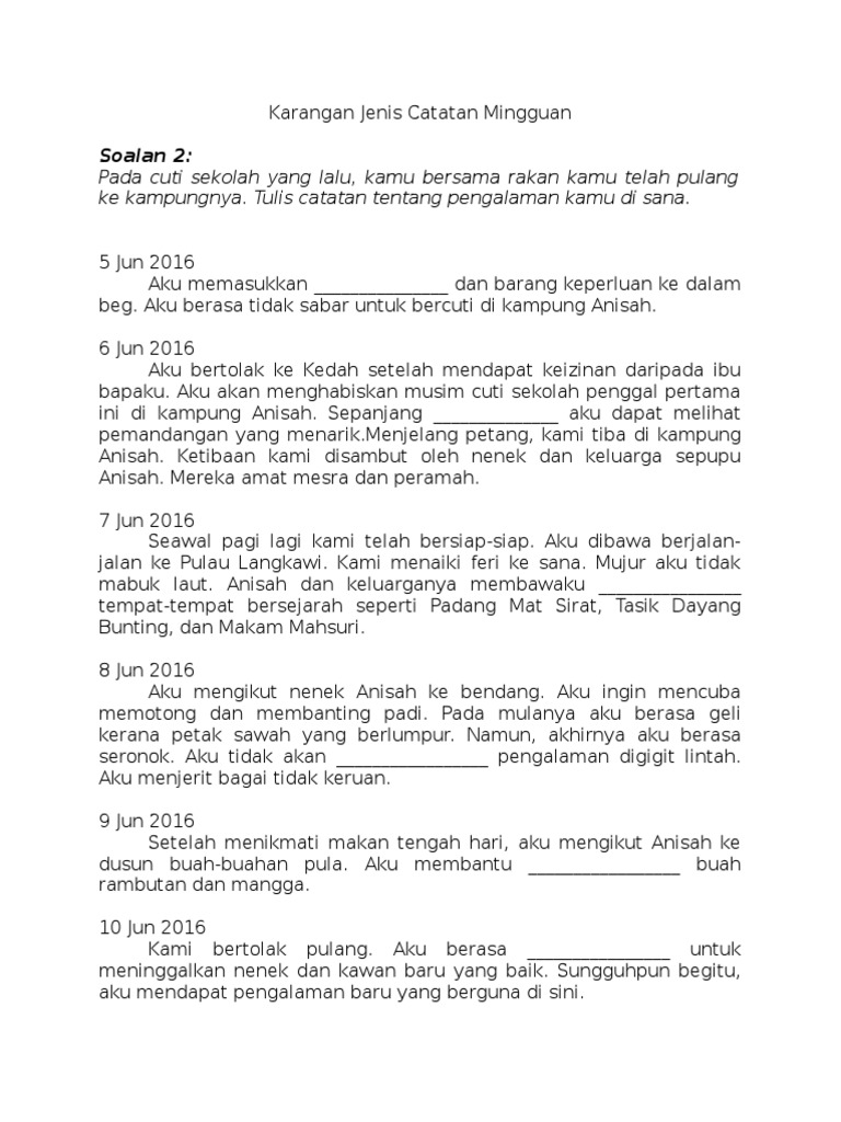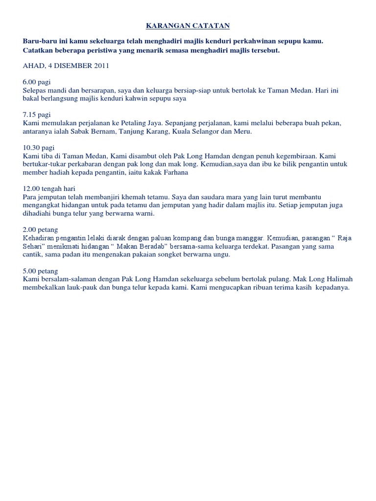 Latihan Karangan Catatan Tahun 5