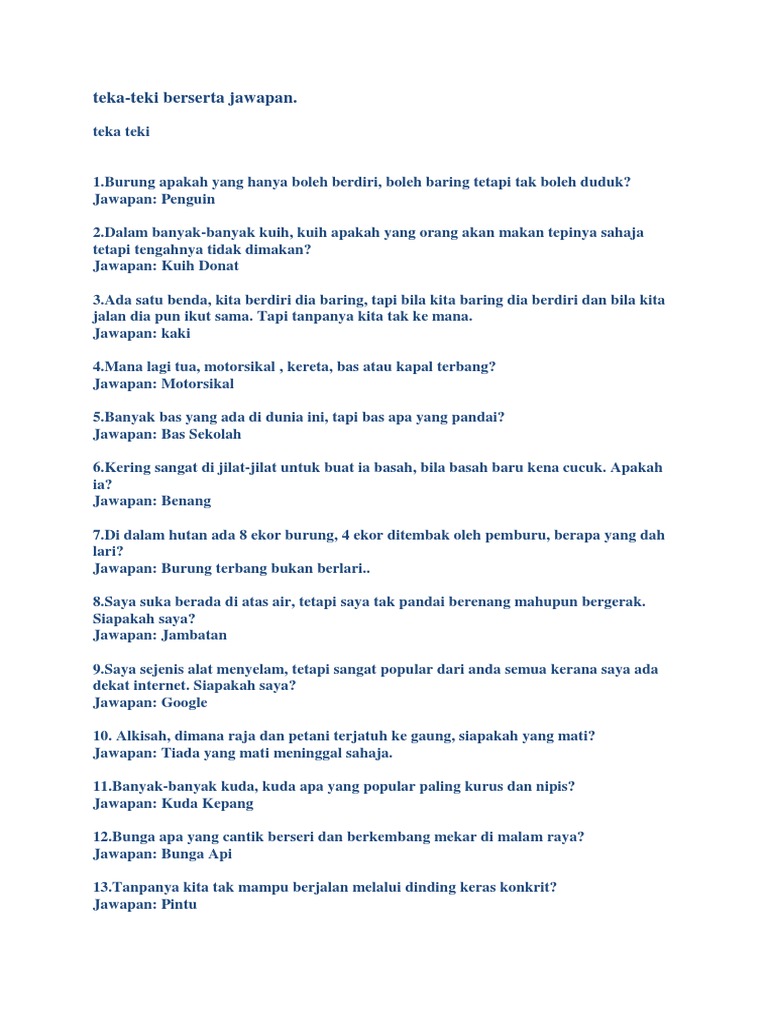 50 Teka Teki Dengan Jawapan Yang Logik No 22 Serius Lawak Layar Kaca Malaysia
