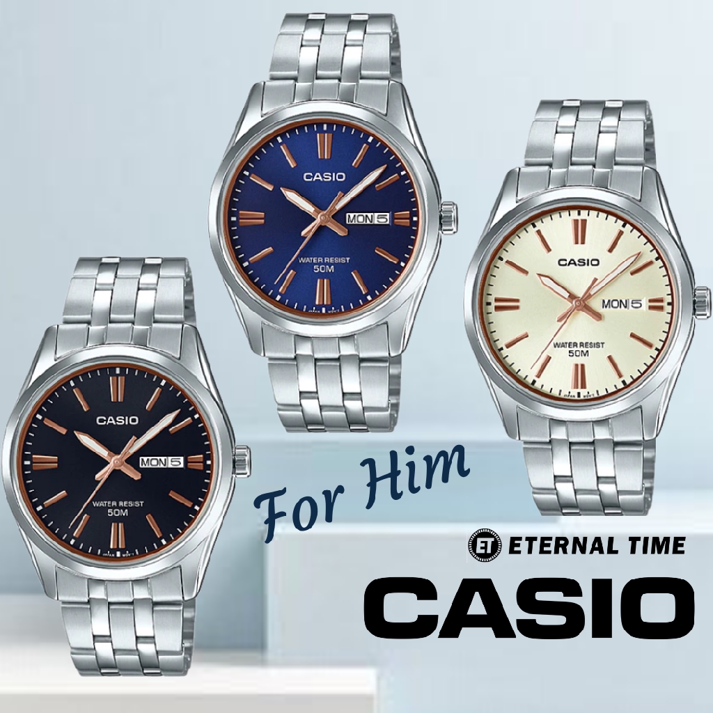 Casio Men Analog Watch For Man Jam Tangan Lelaki Analog Mtp Vd300d Steel Strap Free