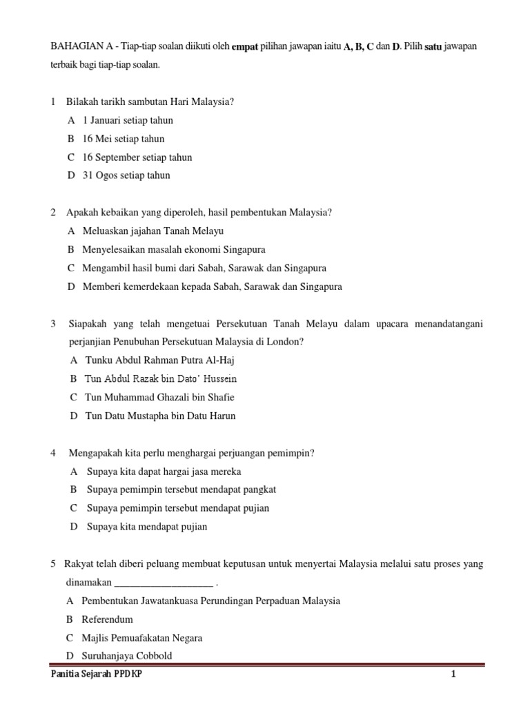 Kebaikan Kita Dapat Dengan Penubuhan Malaysia Jawapan Soalan