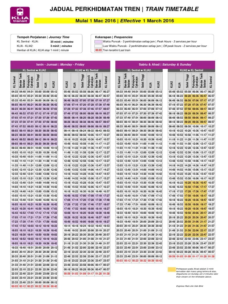 Jadual Dan Harga Tiket Erl 2020 Klia Ekspres Klia Transit Spa