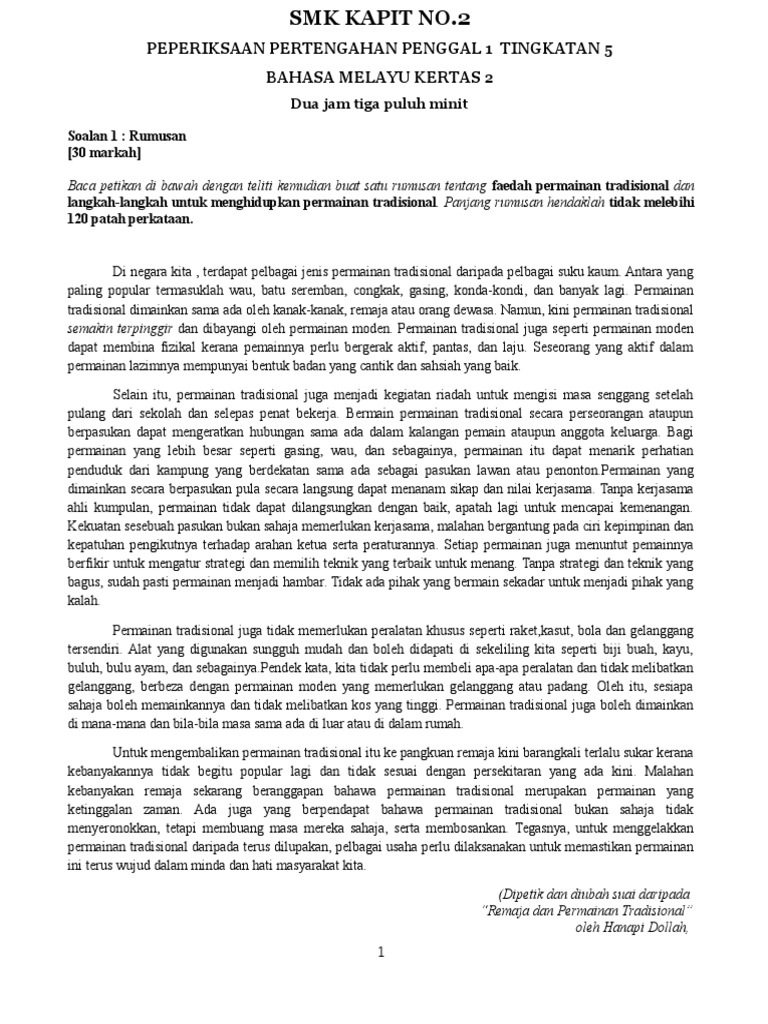 Latihan Dan Jawapan Rumusan Spm Bertemakan Permainan Tradisional