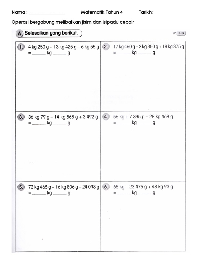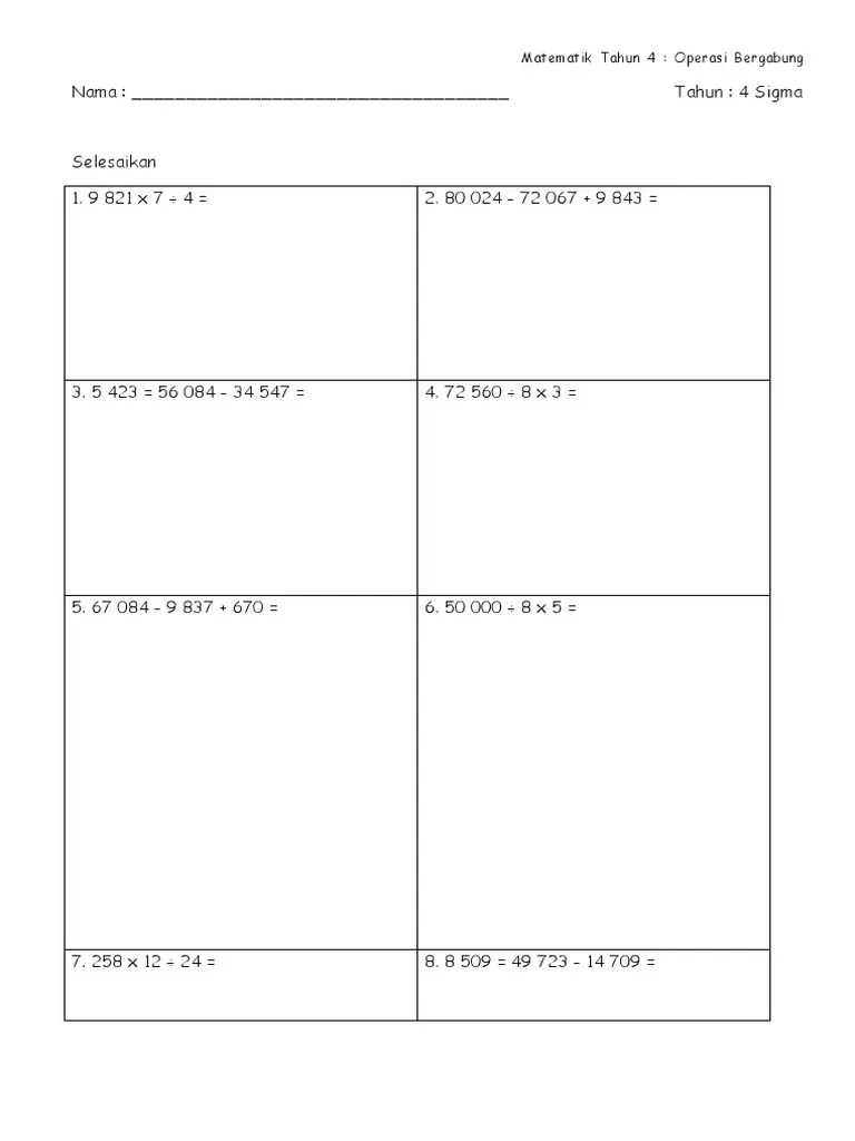 Soalan Matematik Operasi Bergabung Tahun 4 Kosong Kerja