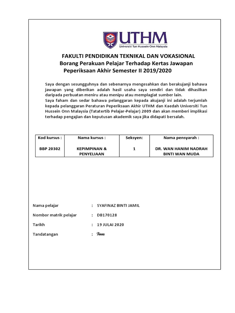 Universiti Tun Hussein Onn Malaysia Peperiksaan Akhir Semester Jawapan