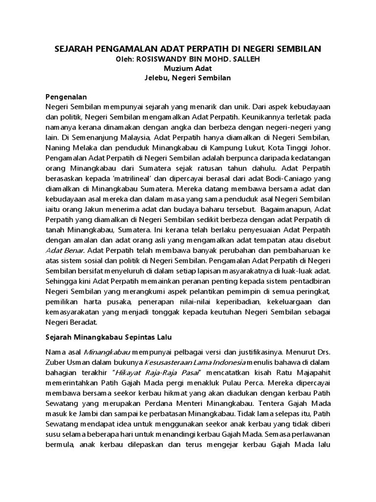 Sejarah Pengamalan Adat Perpatih Di Negeri Sembilan