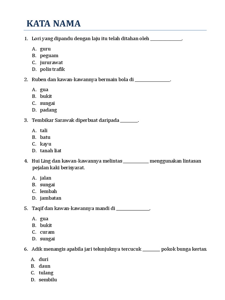 Latih Tubi Soalan Latihan Bahasa Melayu Tahun 6 3