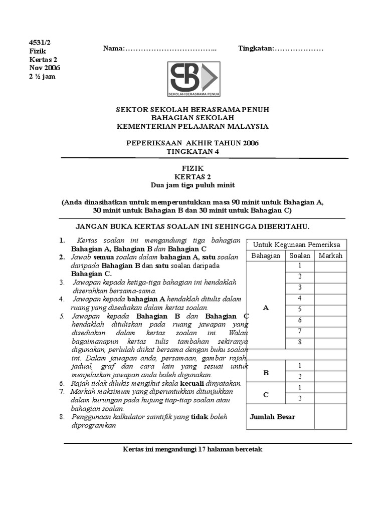 Trial Spm Physics P2 Zon Sri Aman Sarawak