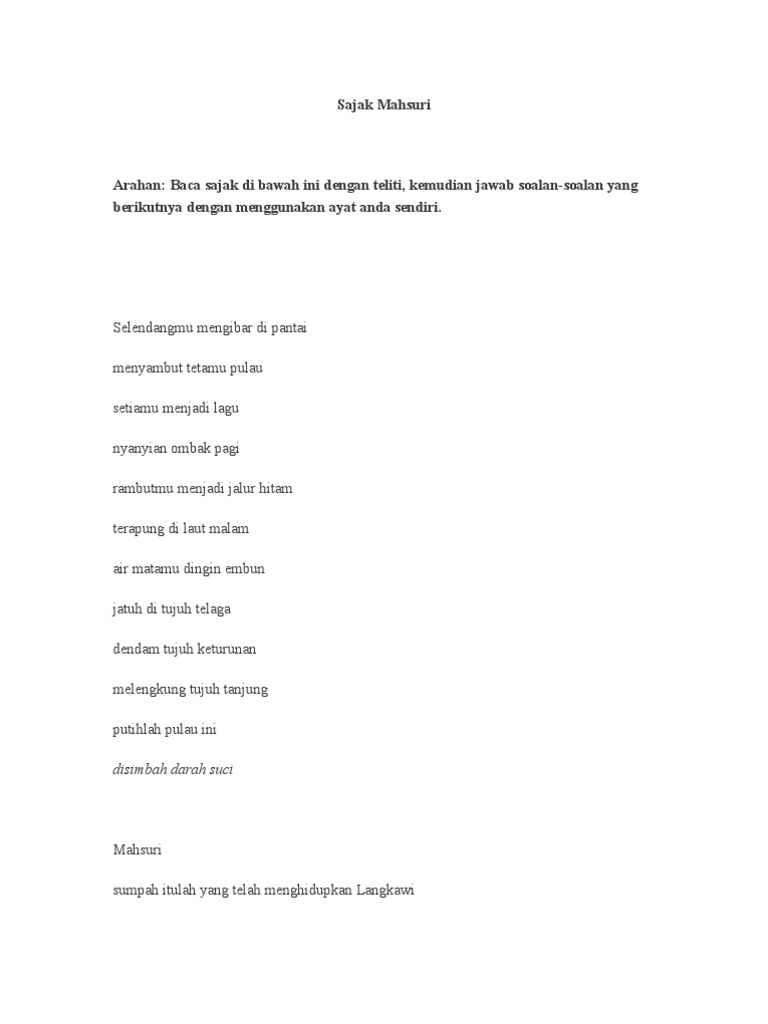 Sajak Mahsuriharga Remaja