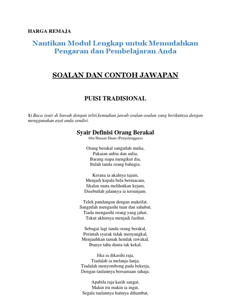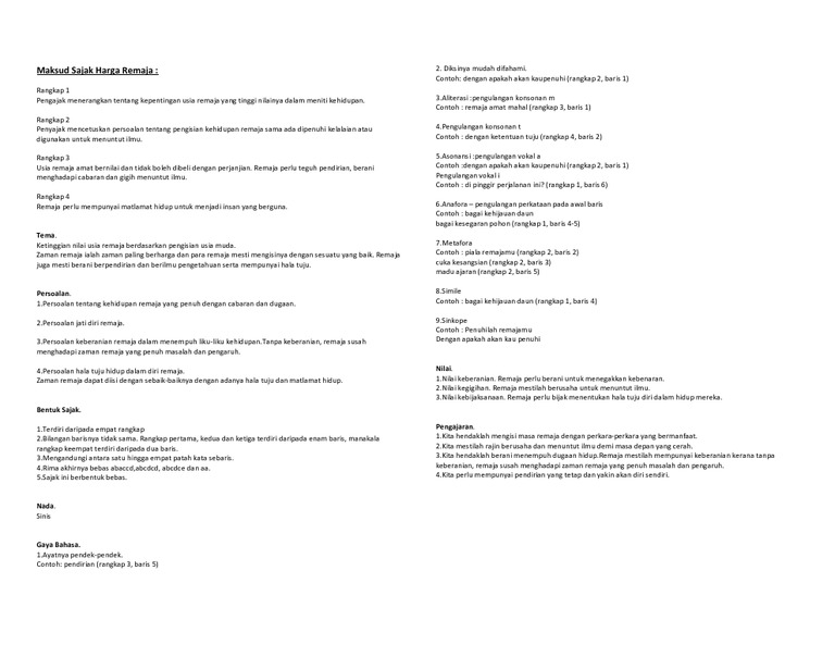 Maksud Sajak Harga Remaja