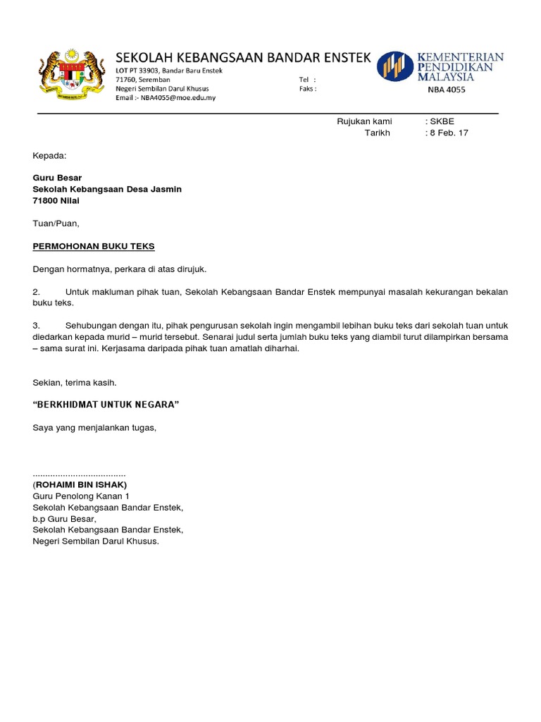Surat Mohon Buku Teks Sekolah Lain