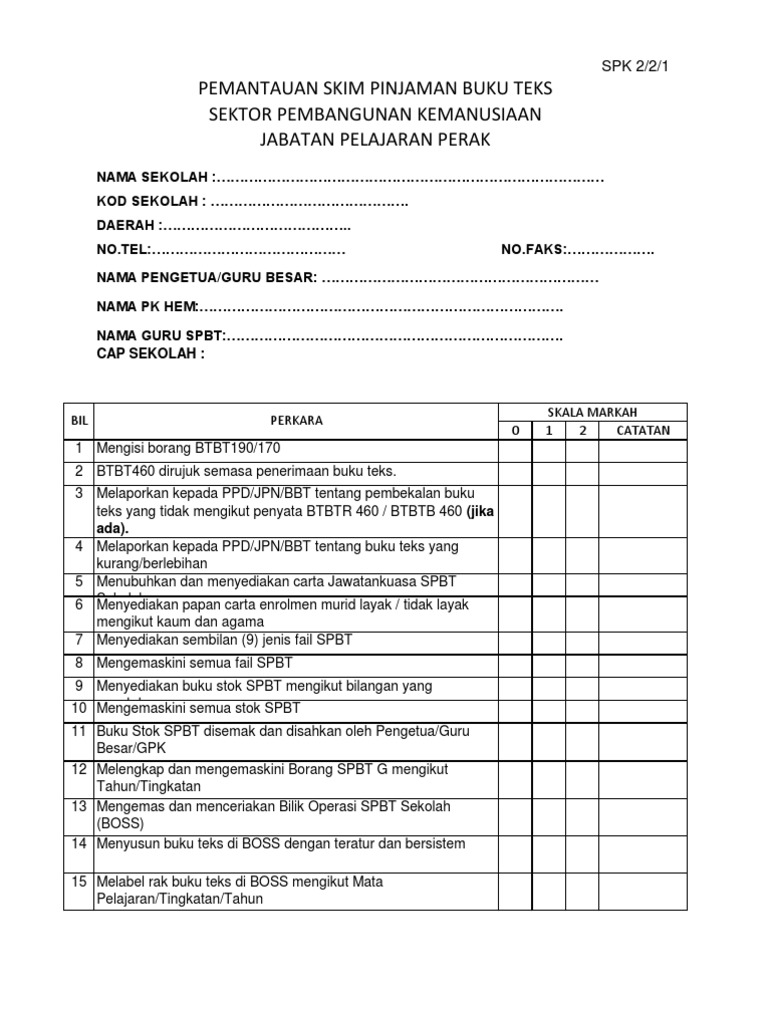 Borang Pelupusan Buku Teks Jpn Perak