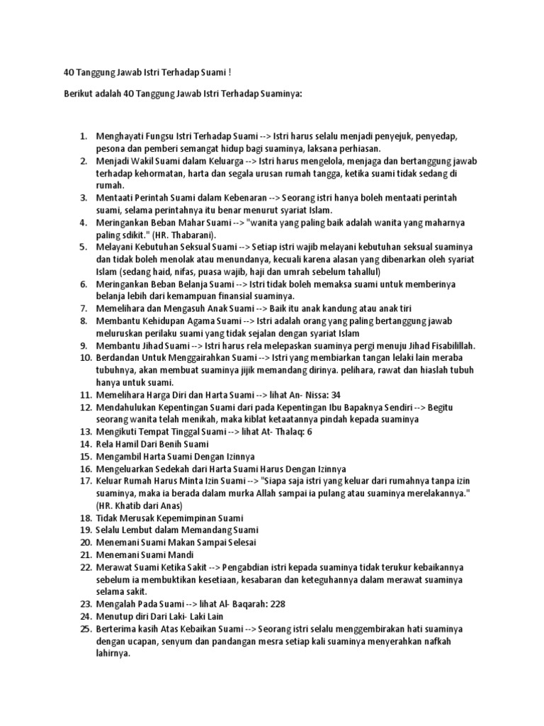 40 Tanggung Jawab Istri Terhadap Suami