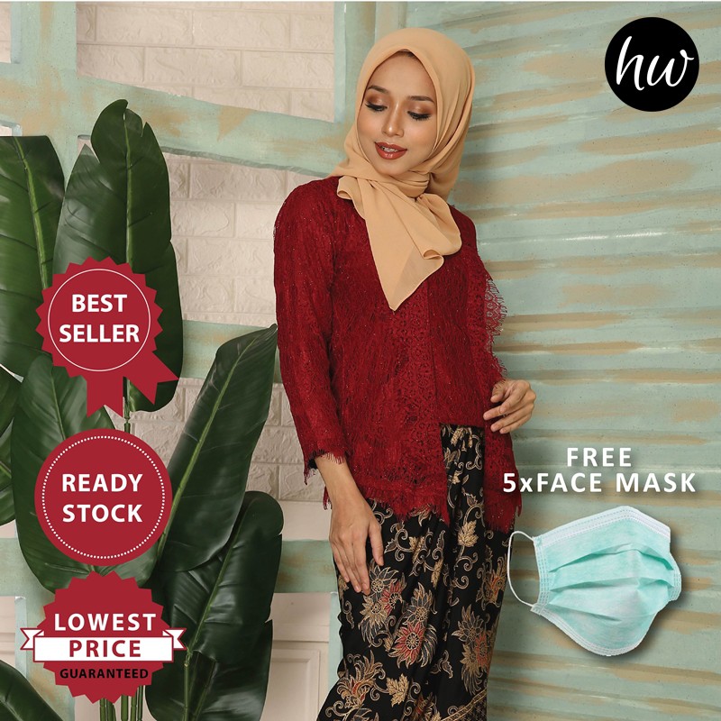 Haura Wear Kebaya Kota Baru Baju Kebaya Lace In Maroon One Set With Pario Shopee Malaysia