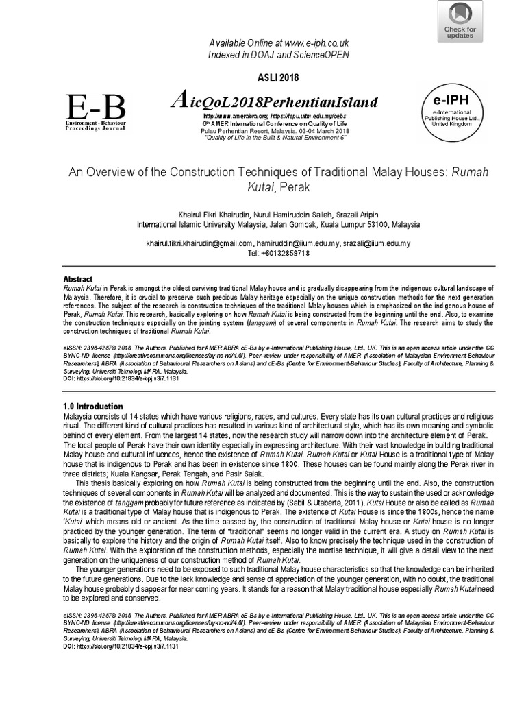 Overview Of The Construction Of Rumah Kutai Asli 2018 Malaysia Case Study