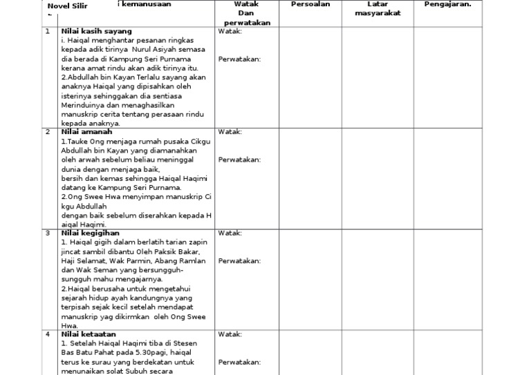 Bahasa Melayu Smk Taman Megah Ria Jawapan Persoalan Dan Nilai Kasih Sayang Novel Silir Daksina