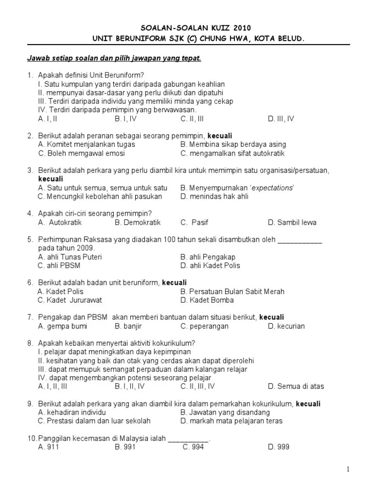 Contoh Soalan Kuiz Alam Sekitar A Soalan