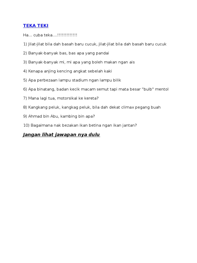 Senarai Contoh Teka Teki Ali Bin Abu Kambing Bin Yang Meletup Untuk Para Ibubapa Pekeliling Terbaru Kerajaan