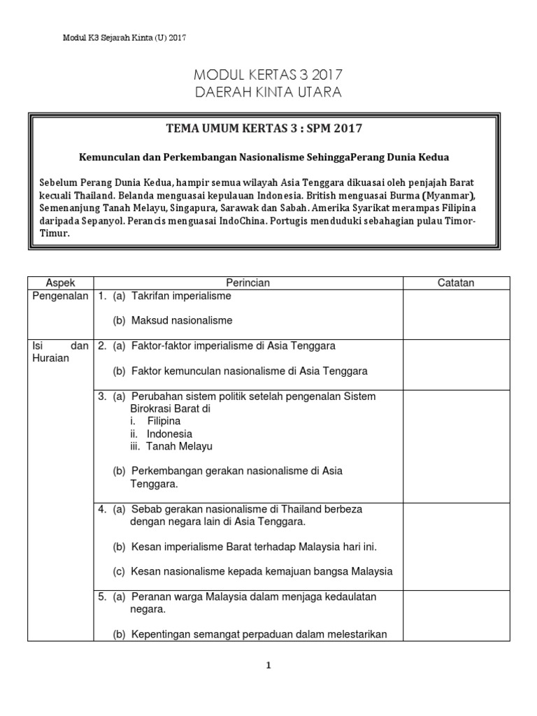 Nasionalisme Di Malaysia Sehingga Perang Dunia Kedua Kertas 3 San Coiy