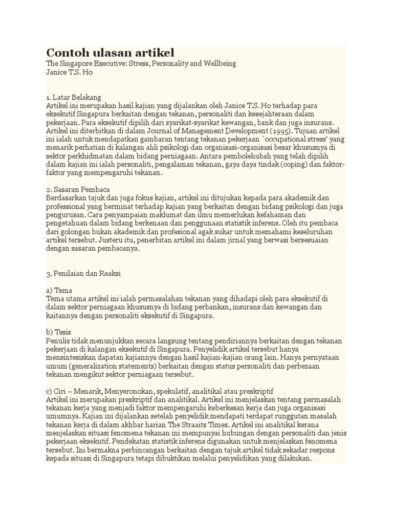 Contoh Ulasan Artikel Dalam Jurnal