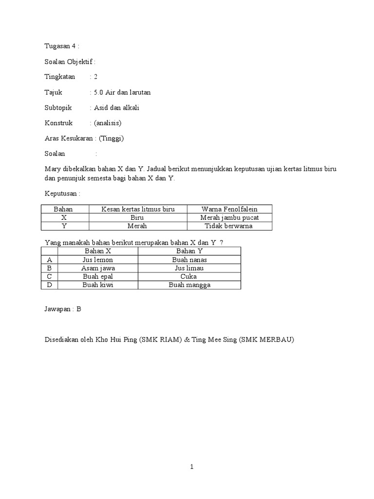 Soalan Sains Tahun 5 Asid Dan Alkali Terengganu O
