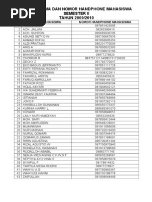 Daftar Nama Dan Nomor Handphone Mahasiswa Semester Ii Doc