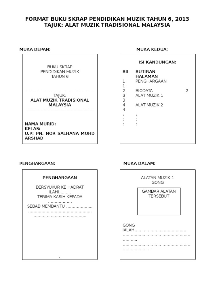 Format Buku Skrap Pendidikan Muzik Tahun 6