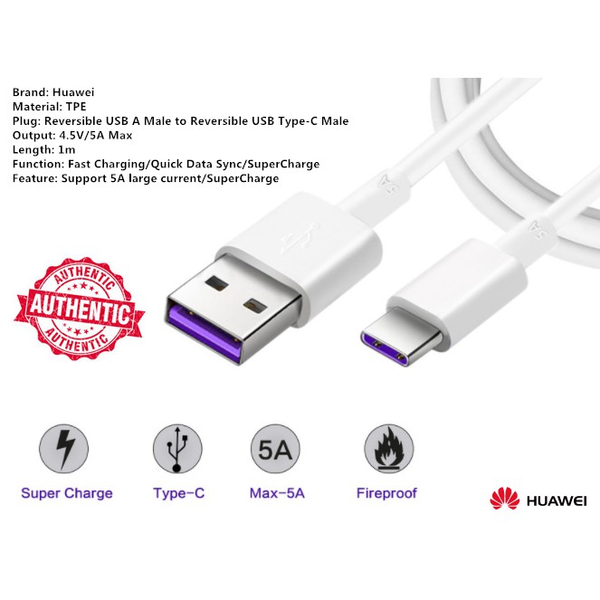 Original Superfastcharge Huawei Usb 5a Type C Cable Lazada Singapore
