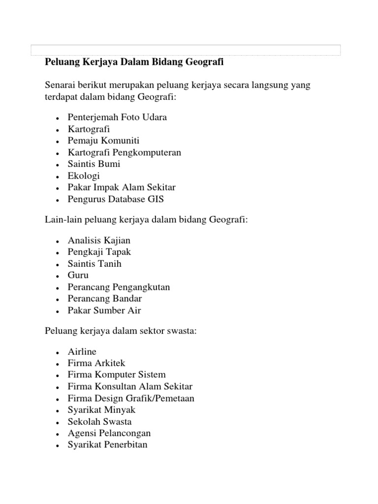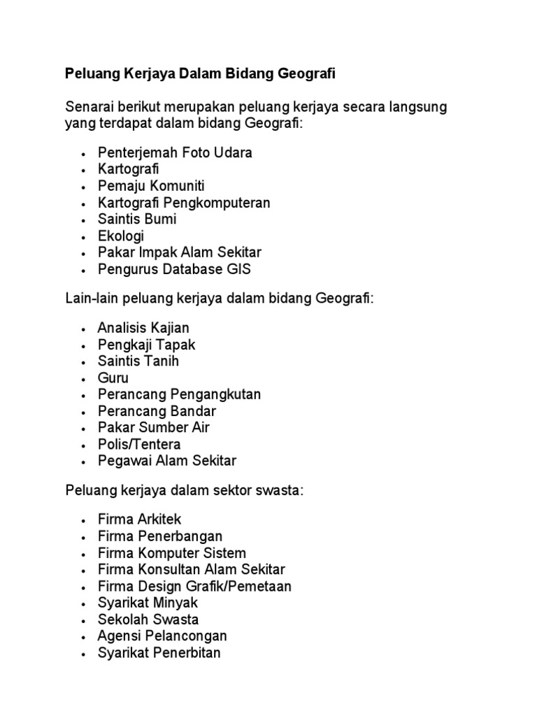 Peluang Kerjaya Dalam Bidang Geografi