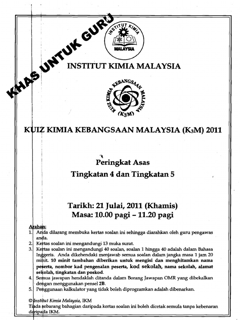 Kuiz Kimia Kebangsaan K3m 2011 Pdf Document