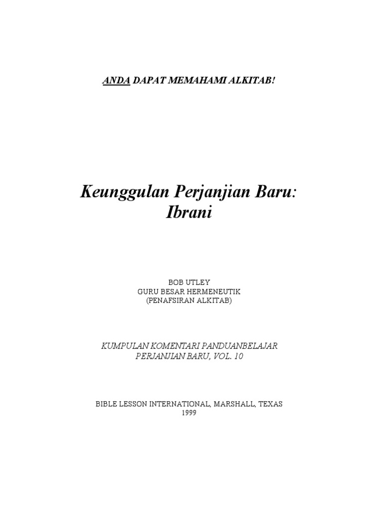 Bagian V Teologi Surat Ibrani Pendahuluan A Sifat